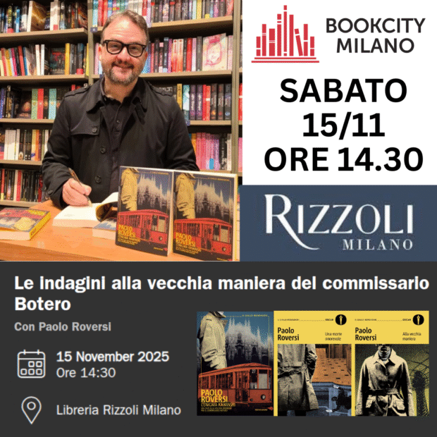Sabato 15 novembre alle 14.30 vi aspetto alla libreria Rizzoli in Galleria Vittorio Emanuele II per un appuntamento speciale nel cuore di Bookcity Milano. Sarà una presentazione diversa dal solito: un reading-spettacolo dedicato al commissario Botero, tra misteri, curiosità e retroscena inediti de “L’enigma Kaminski” (Mondadori).Un viaggio nel mondo dell’Amish, l’investigatore anti-tecnologico che risolve i casiContinua a leggere “Botero come non l’avete mai visto: reading spettacolo alla Libreria Rizzoli per Bookcity” - Botero: il caso Scerbanenco è tuo!