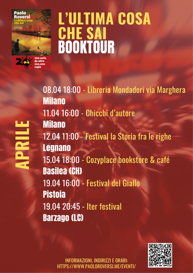 Un mese con 6 appuntamenti di cui uno anche all’estero in Svizzera. Vi aspetto 08.04 18:00 – Libreria Mondadori via Marghera – Milano 11.04 16:00 – Chicchi d’autore – Milano 12.04 11:00 – Festival la Storia fra le righe – Legnano (MI) 15.04 18:00 – Cozyplace bookstore & café – Basilea (CH) 19.04 Continua a leggere “Gli appuntamenti del mese di Aprile” - A spasso per Milano in sella al Giallone
