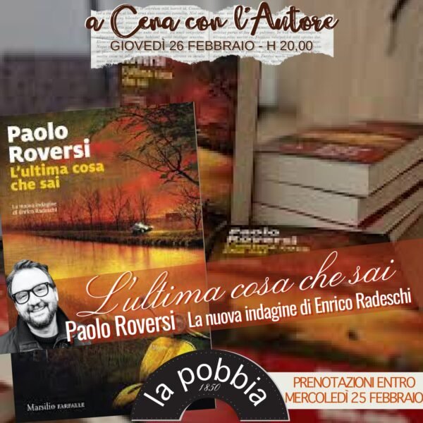Giovedì 26 febbraio alle ore 20:00 al ristorante La Pobbia di Milano si terrà una cena con l’autore durante la quale presenterò il mio romanzo “L'ultima cosa che sai” (Marsilio). Prenotazione obbligatoria allo 02 3800 6641 Ecco il menù della serata.