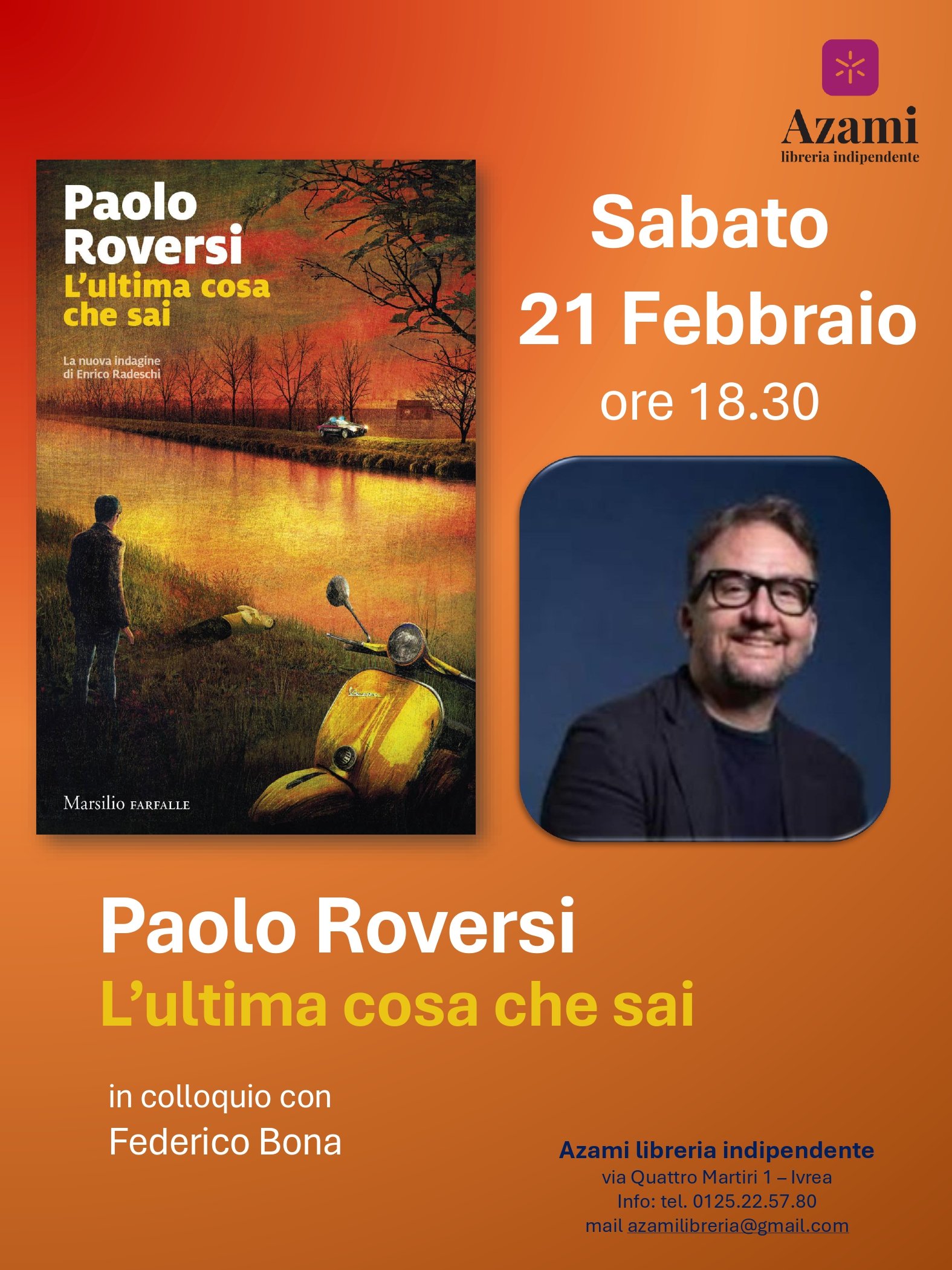 Presentazione del nuovo romanzo L'ultima cosa che sai (Marsilio) alla libreria Azami.