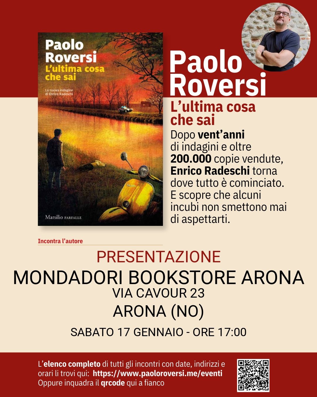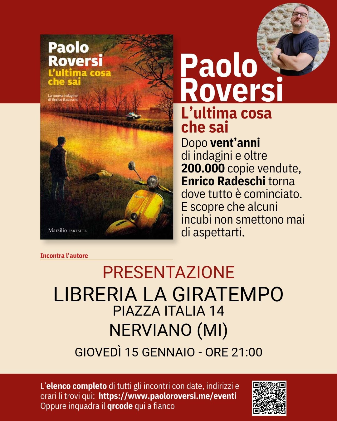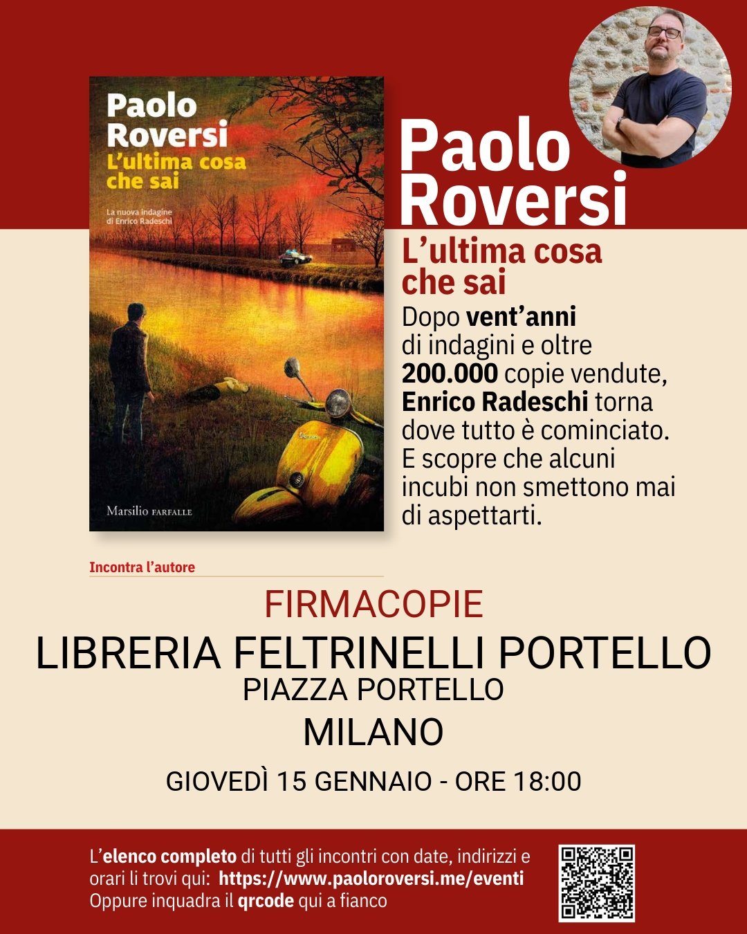 Lunedì 12 gennaio alle ore 18.30 sarò alla libreria Feltrinelli di via Sabotino, 28 a Milano per presentare in ANTEPRIMA NAZIONALE il mio nuovo romanzo L'ultima cosa che sai (Marsilio)