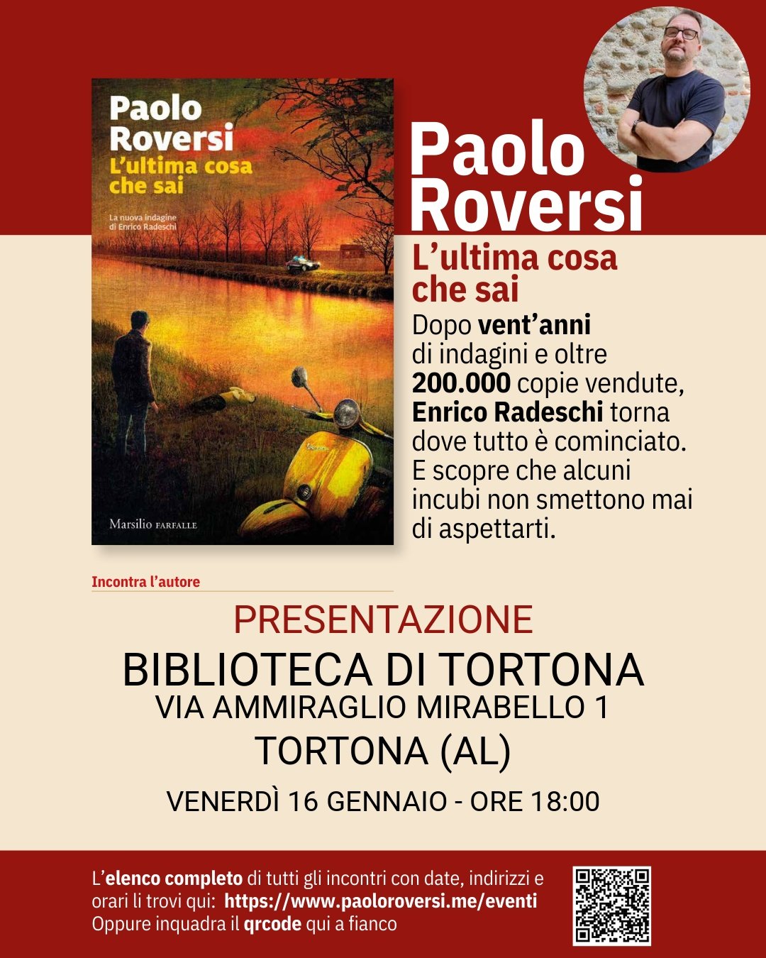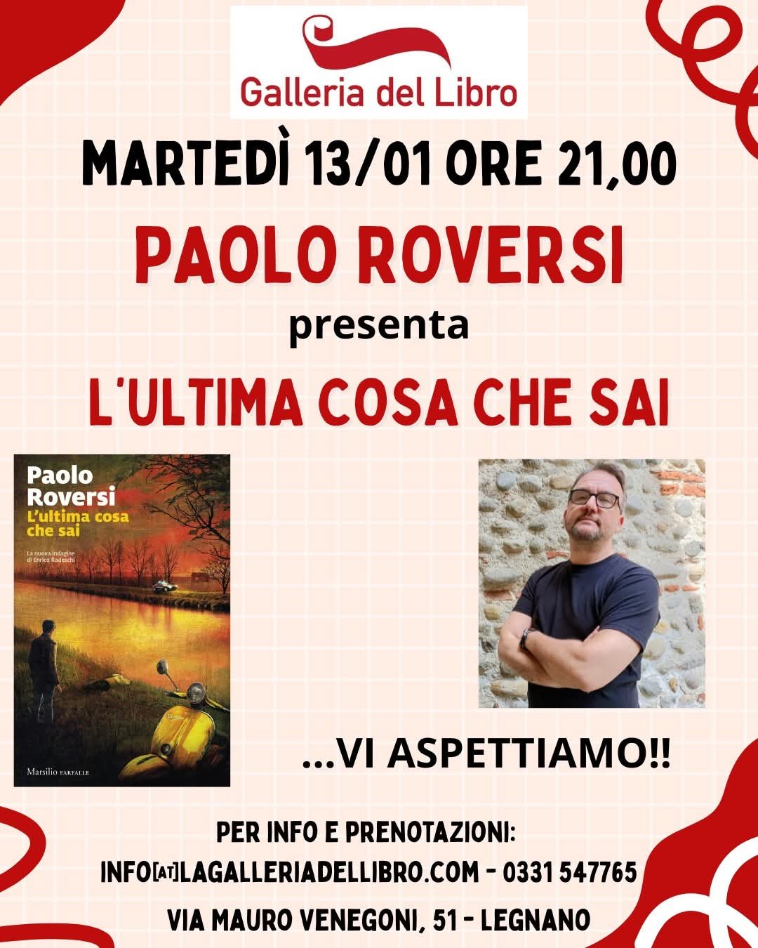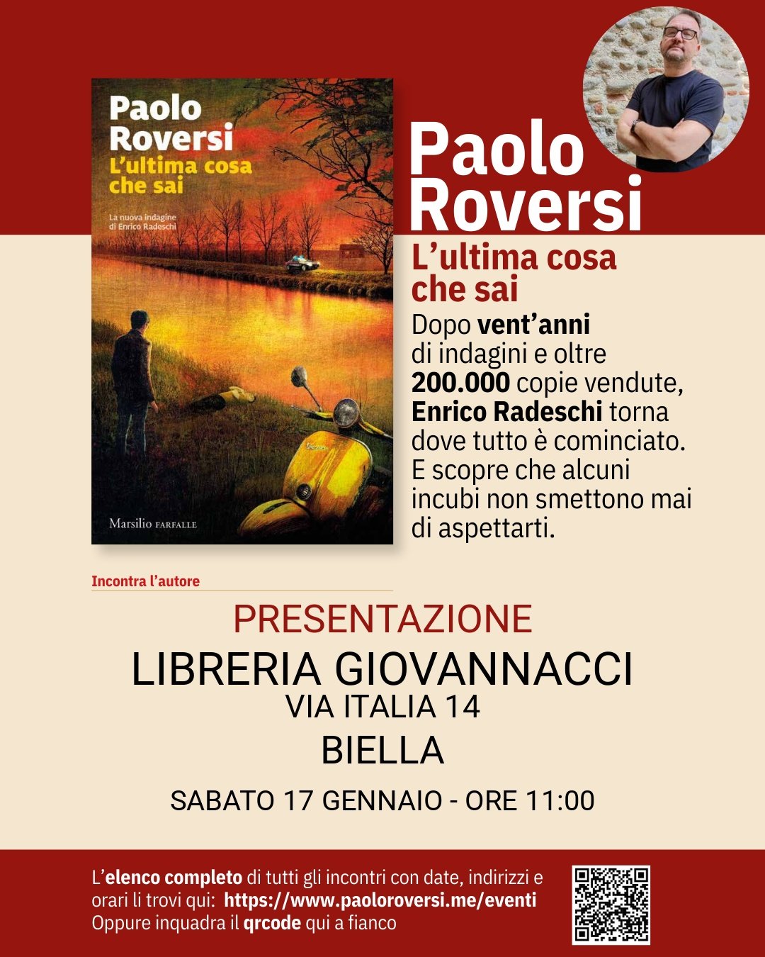 Lunedì 12 gennaio alle ore 18.30 sarò alla libreria Feltrinelli di via Sabotino, 28 a Milano per presentare in ANTEPRIMA NAZIONALE il mio nuovo romanzo L'ultima cosa che sai (Marsilio)
