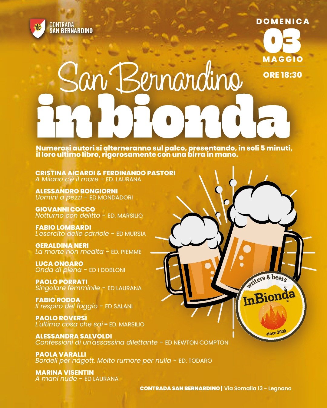 Domenica 3 maggio alle ore 18:30 vi aspetto a Legnano (Mi) per presentare il romanzo L'ultima cosa che sai (Marsilio) nell'ambito del San Bernardino in Bionda 2026.