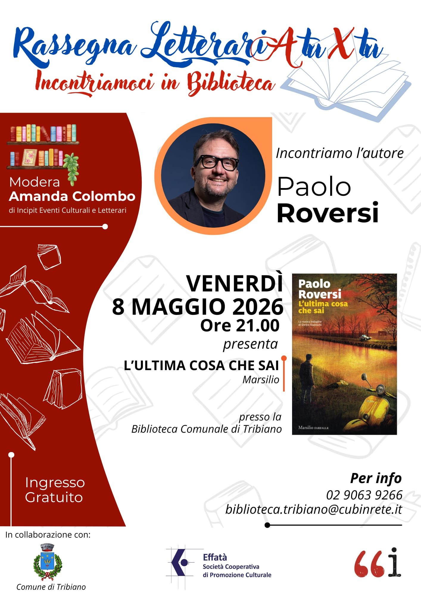 Venerdì 8 maggio alle ore 21 vi aspetto a Tribiano (MI) per presentare il romanzo L'ultima cosa che sai (Marsilio).