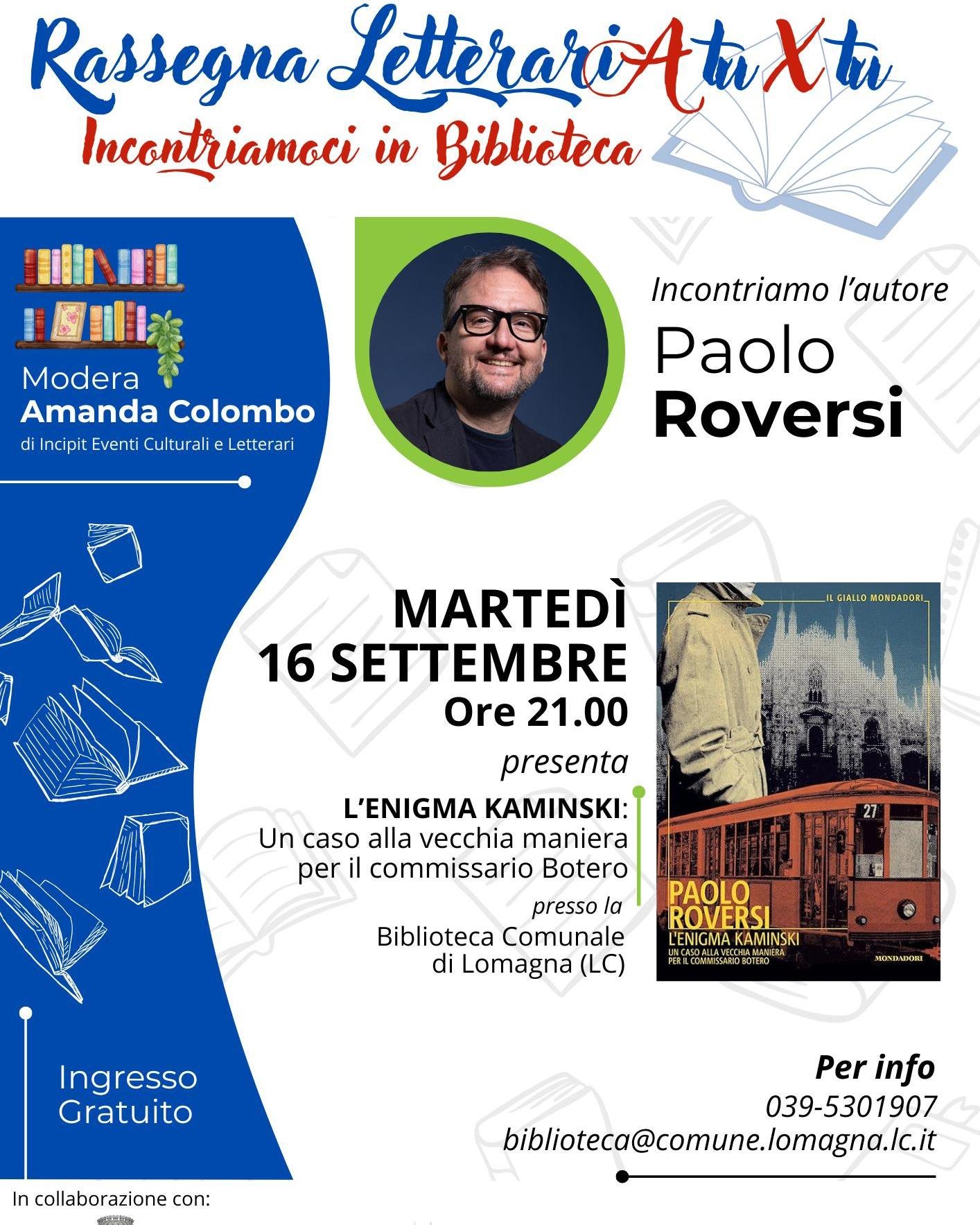 Martedì 16 settembre alle ore 21 presenterò a Lomagna (LC) il mio romanzo “L’enigma Kaminski” (Mondadori). Appuntamento in biblioteca.
