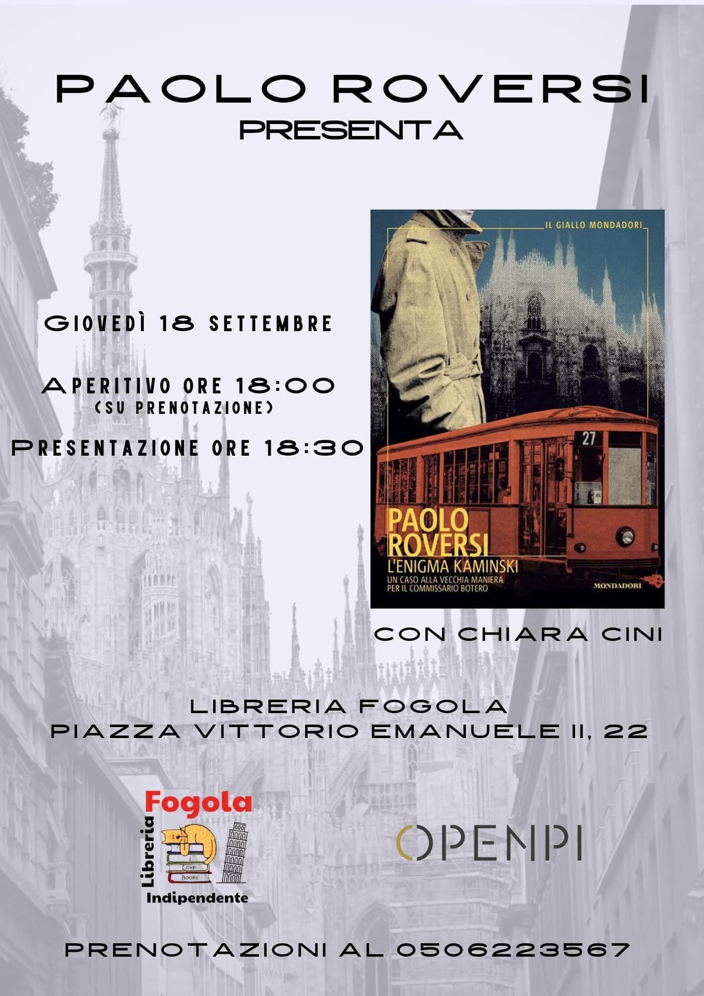Giovedì 18 settembre alle ore 18:30 presenterò a Pisa il mio romanzo “L’enigma Kaminski” (Mondadori). Appuntamento alla libreria Fogola!