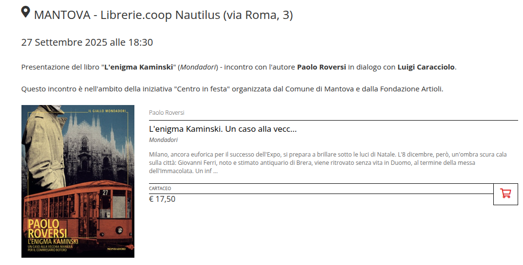 Paolo Roversi presenta L’enigma Kaminski a Mantova
