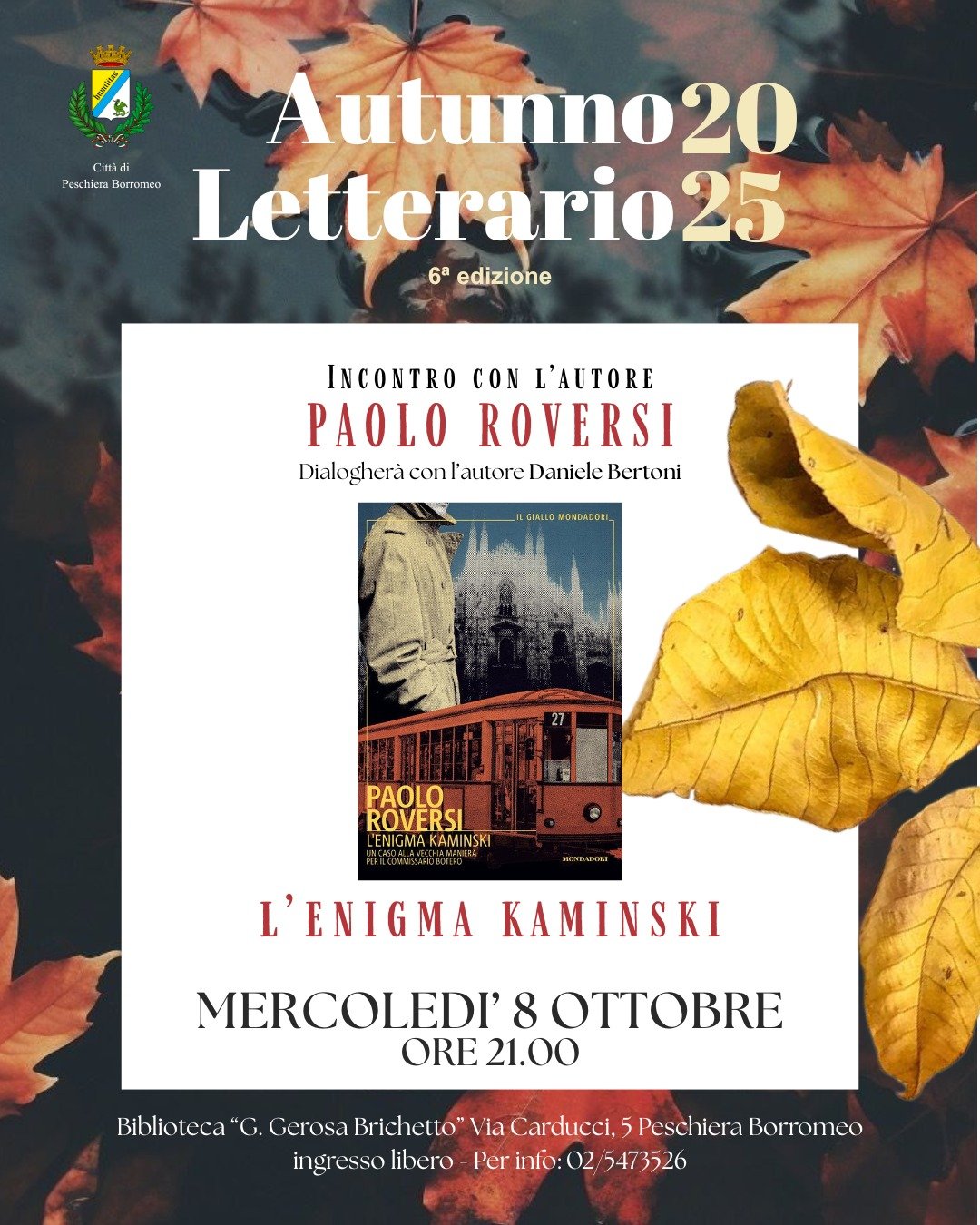 Mercoledì 8 ottobre alle ore 21 presenterò a Peschiera Borromeo (MI) il mio romanzo “L’enigma Kaminski” (Mondadori).