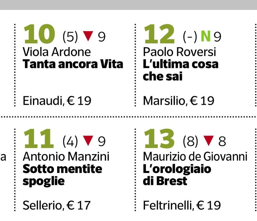 Il modo migliore per festeggiare i 20 anni: Radeschi e il Giallone sono entrati nella classifica dei libri più venduti della settimana al 12 posto dell’italiana! E sono in ottima compagnia! Grazie davvero a tutti i lettori, i librai, gli amici e al mio editore Marsilio!